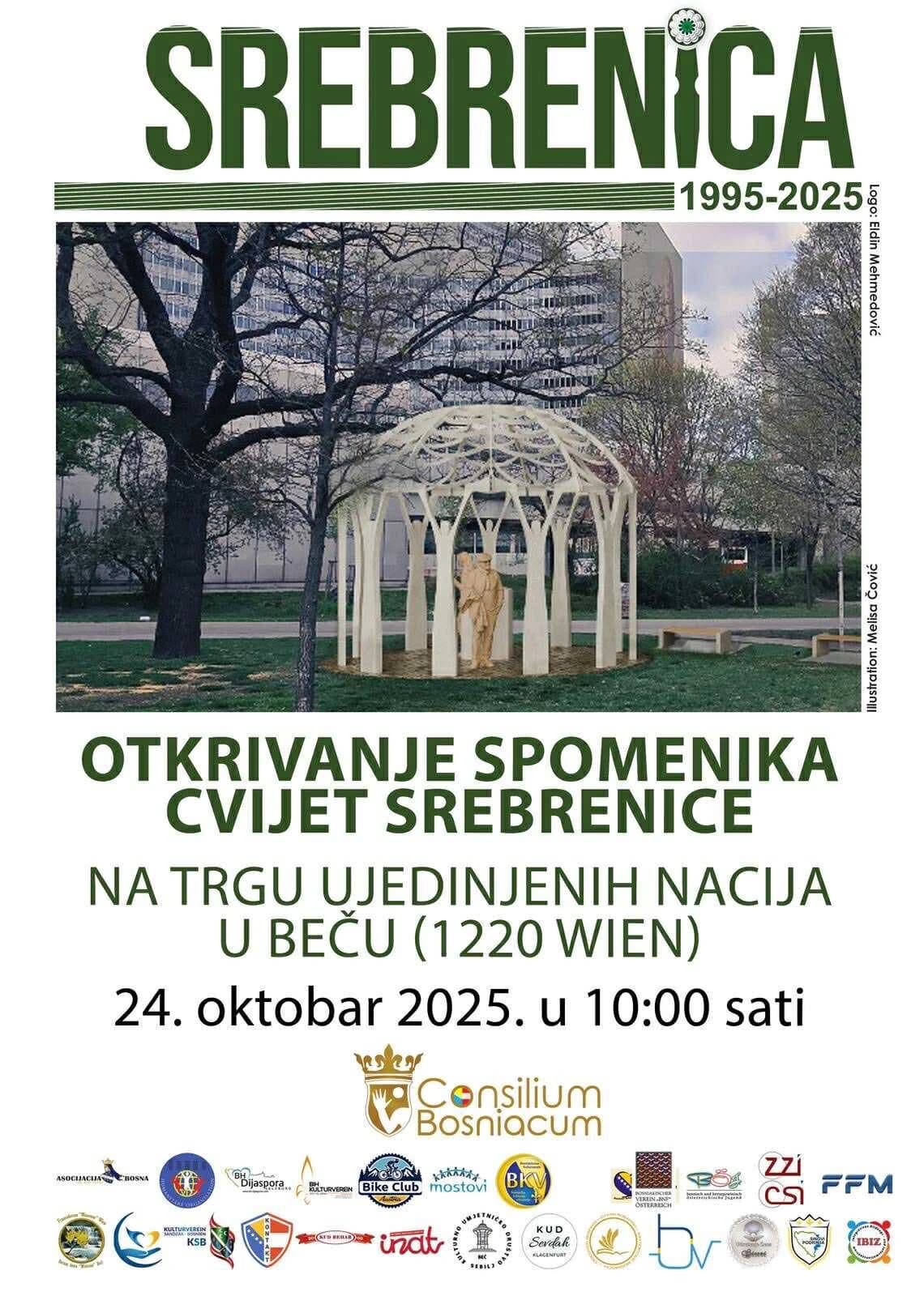 Na Trgu Ujedinjenih nacija u Beču, neposredno ispred zgrade Ujedinjenih nacija, 24. oktobra bit će svečano otvoren spomenik "Cvijet Srebrenice".