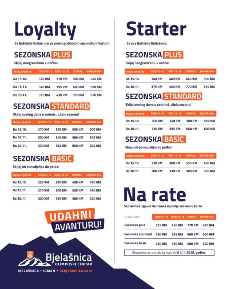 Ukoliko ste ranije kupovali sezonsku kartu, spadate u Loyalty program gdje je standardna sezonska karta za odrasle 535 KM do 15.10.