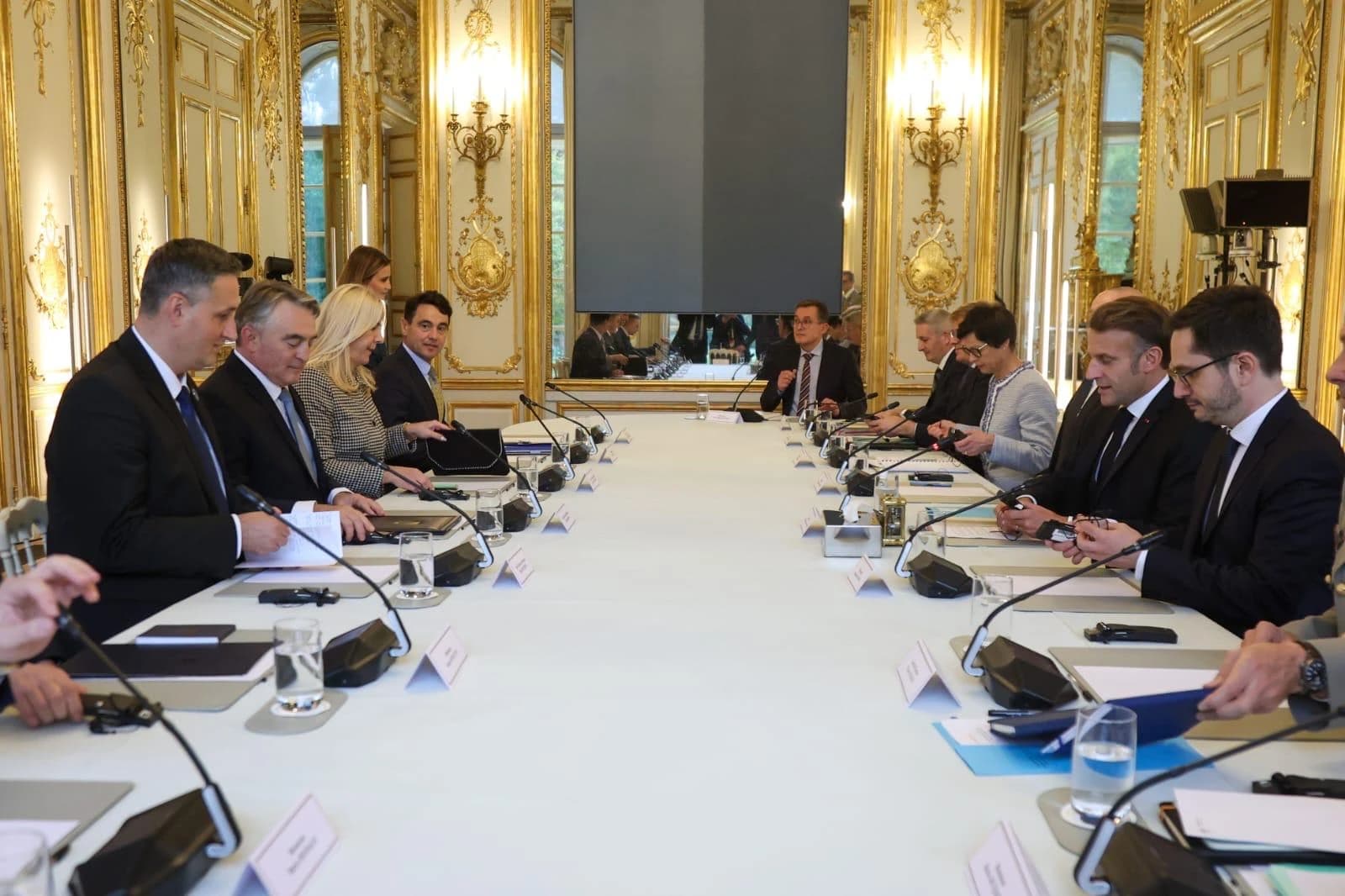 Članovi Predsjedništva Bosne i Hercegovine sastali su se danas u Parizu sa predsjednikom Republike Francuske Emmanuelom Macronom. Sastanku u Jelisejskoj palati prisustvovala je i evropska komesarka za proširenje Marta Kos.