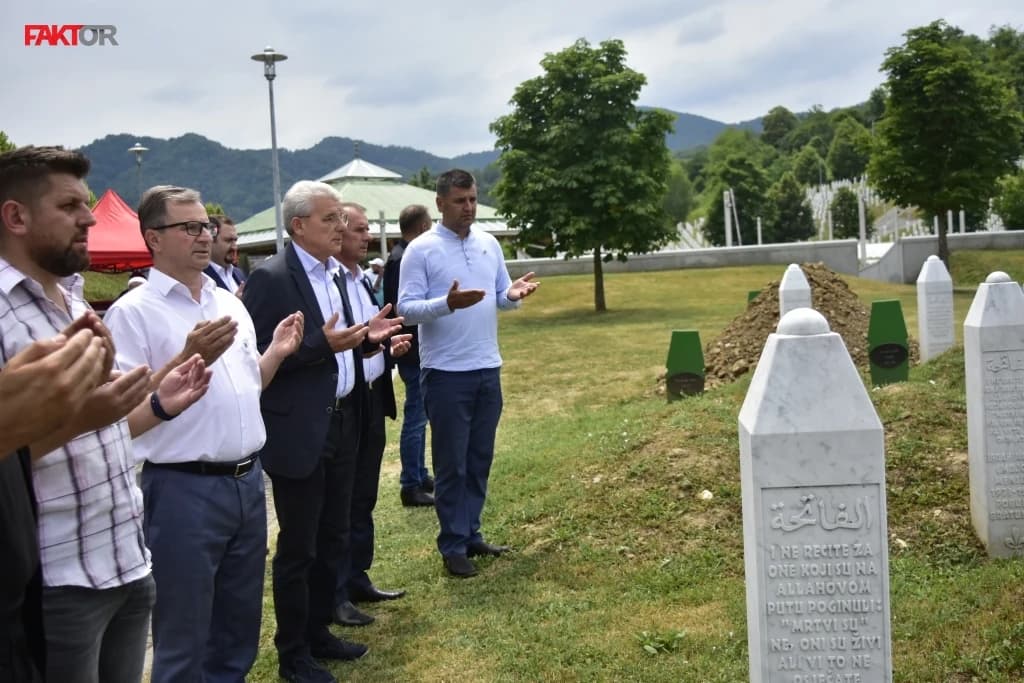 Po dolasku u Potočare, Džaferović je proučio Fatihu i odao počast žrtvama genocida u Srebrenici.