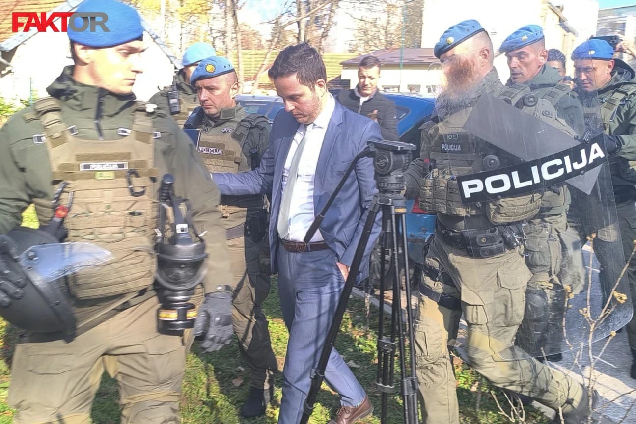 Kantonalni premijer Nihad Uk stigao je na mjesto događaja u pratnji policije, koja je prethodno spriječila građane da uđu na sjednicu Vlade KS.