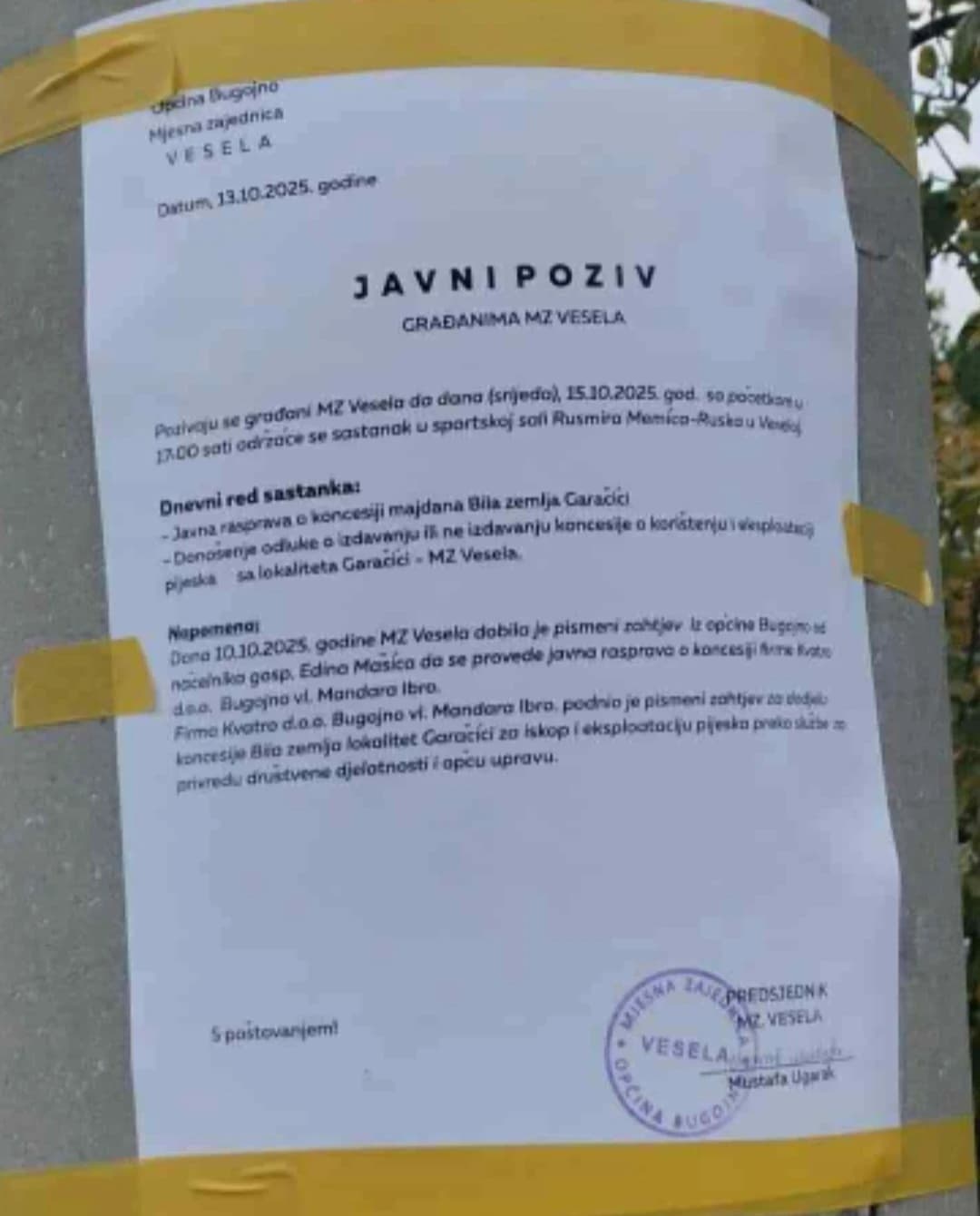 poziva bila je javna rasprava o koncesiji Mejdana Bila zemlja Garčići, te donošenje
