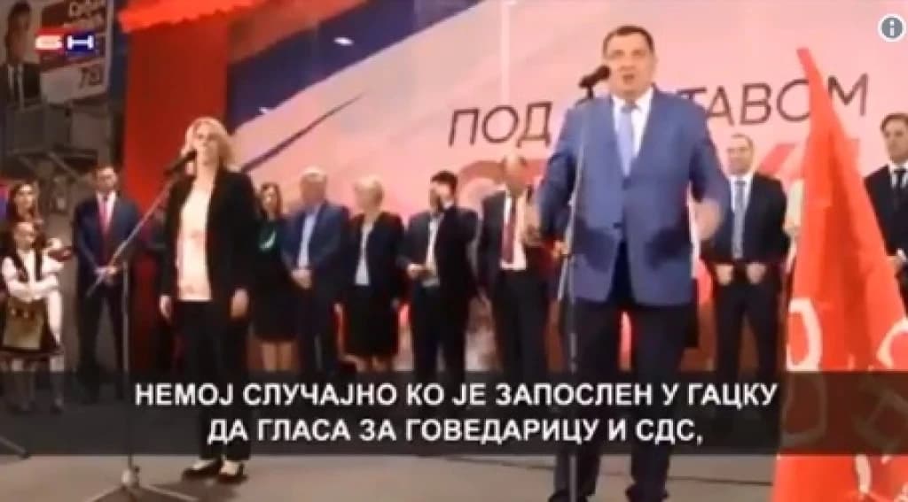 - Nemojte slučajno da neko ko je zaposlen u Gacku glasa za Govedaricu i SDS. Izbacit ćemo ga s posla - izjavio je Dodik, na što je dobio gromoglasan aplauz i smijeh stranačkih kolega i ostalih prisutnih.