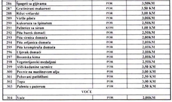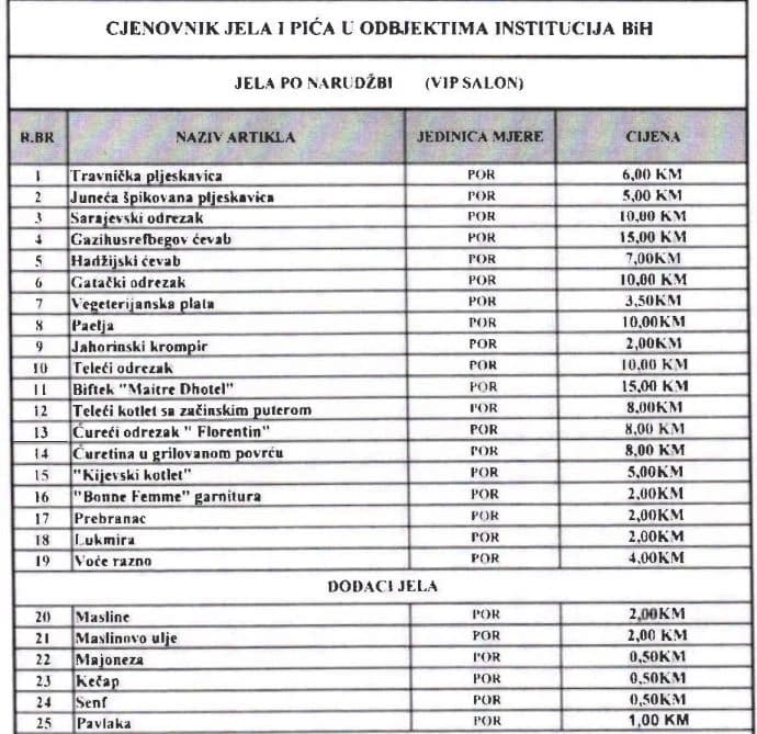 - Novi cjenovnik je usaglašen s preporukama Ureda za reviziju institucija BiH, te su korigirane i povećane cijene prehrambenih proizvoda u Službi za zajedničke poslove institucija BiH. Na ovaj način će biti kompeziran rast cijena ulaznih sirovina, među kojima dominiraju brašno, ulje, riža, zamrznuti proizvodi, voće i povrće, te mesni proizvodi koji u formiranju cijena gotovih proizvoda učestvuju s više od 90 posto. Primjenom novog cjenovnika očekuje se rast prihoda za oko 35 posto - saopćili su iz Vijeća ministara BiH.