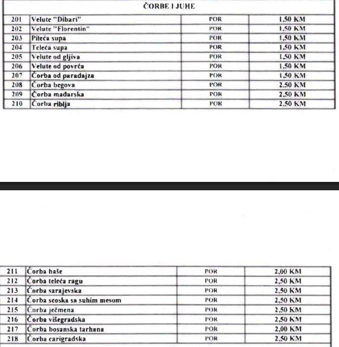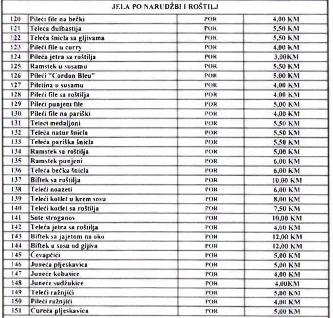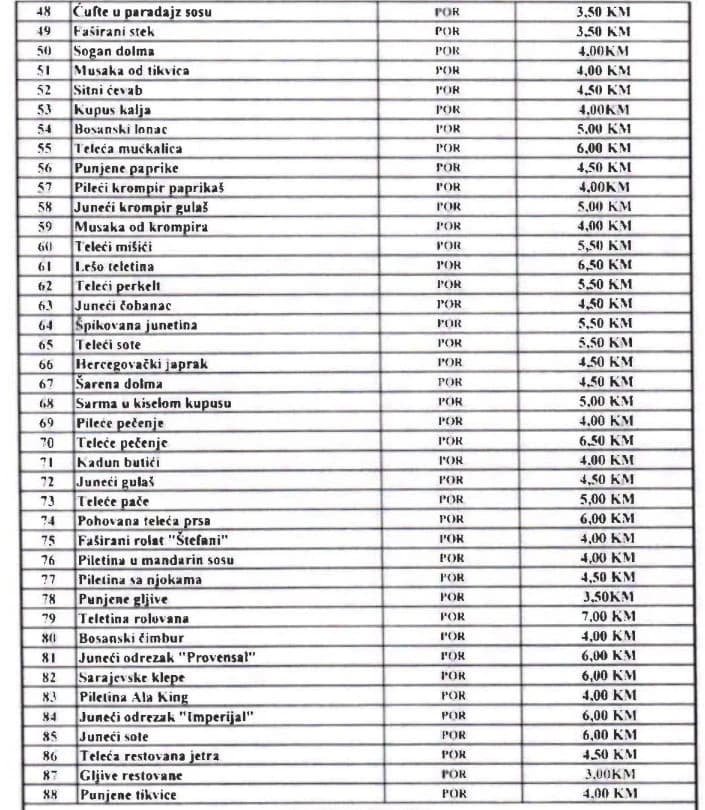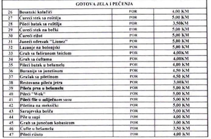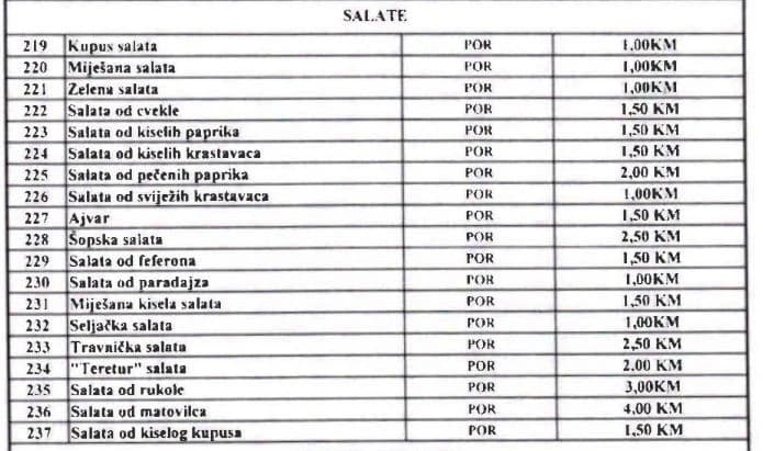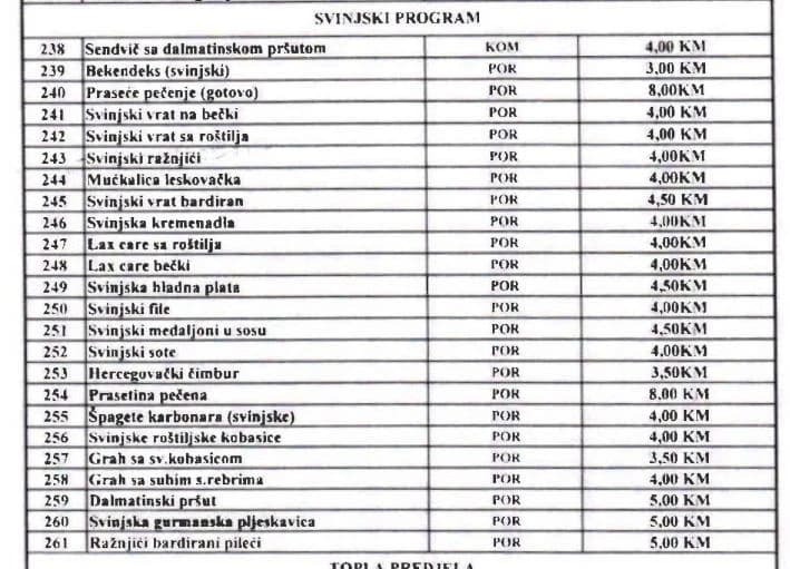 Tako će u ovim objektima između ostalih i funkcioneri, teleće pečenje plaćati 6,5 KM umjesto 5,5 KM, kafu 1,5 KM umjesto 0,80 KM, supu 1,5 KM umjesto jednu KM...