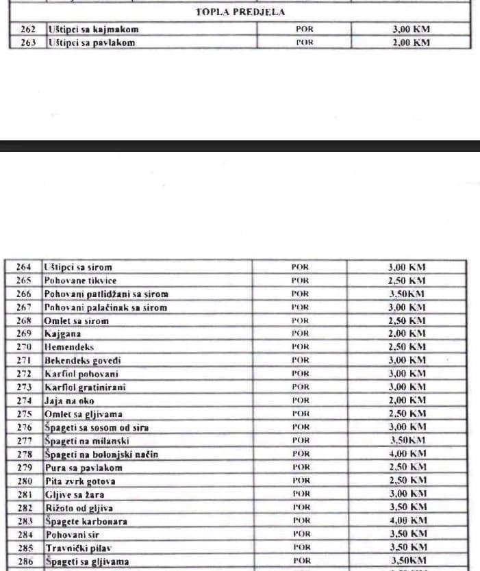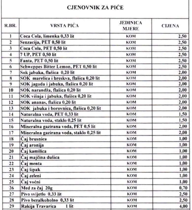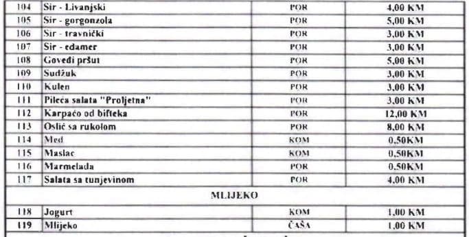Novi cjenovnik koji je redložen možete pogledati na fotografijama ispod.