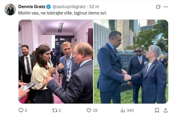 - Molim vas, ne lobirajte više. Izginut ćemo svi - poručuje DF-ov Dennis Gratz uz forografije Sabine Ćudić i Elmedina Konakovića sa američkim zastupnicima.