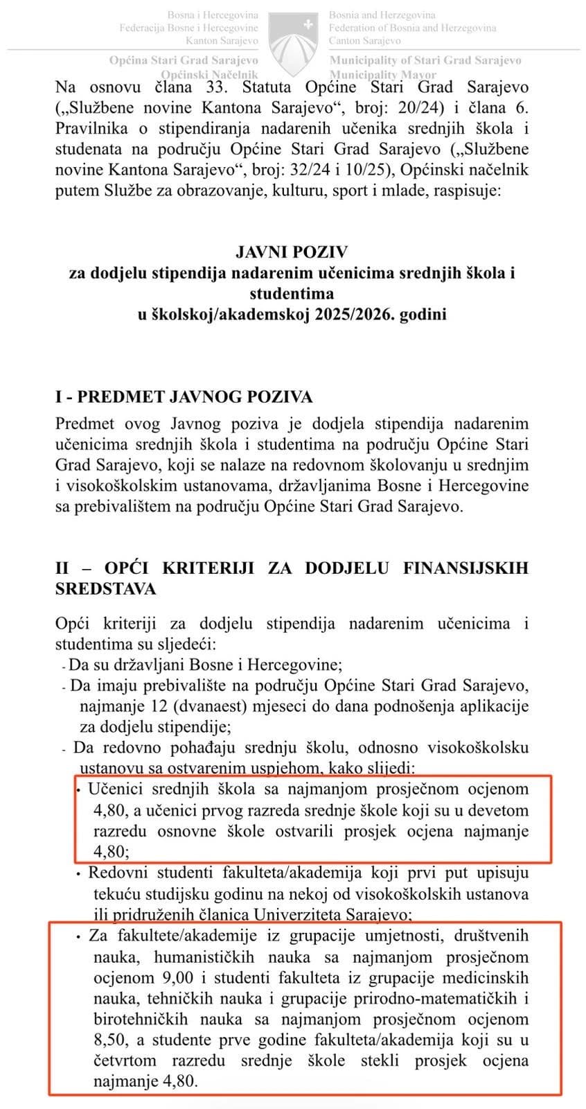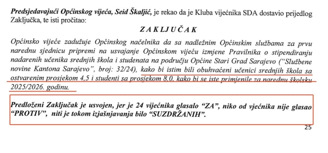 Pri tome je općinske vijećnike, ali i učenike i studente Starog Grada, putem svojih najbližih saradnika dovodio u zabludu tvrdnjama da će Pravilnik sa traženim izmjenama sigurno biti predložen i donesen, te da će se primjenjivati za školsku 2025./26. godinu, odnosno u ovoj budžetskoj godini - istakli su u saopćenju.