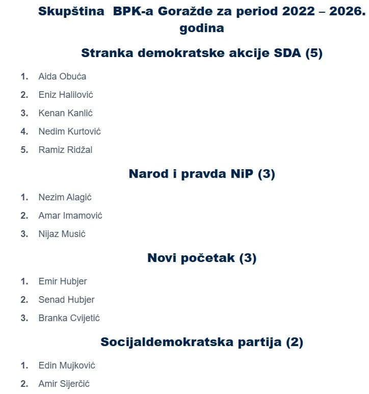 Iz toga bi se moglo zaključiti da su se u Skupštini Bosansko-podrinjskog kantona za pet dana, od četvrtka do ponedjeljka, promijenile tri skupštinske većine. No stvari nisu baš tako jednostavne, a ne mogu ni biti kada je u Skupštinu Bosansko-podrinjskog kantona ušlo čak 13 stranaka, od kojih danas imamo 12 jer se jedan zastupnički klub u međuvremenu raspao.