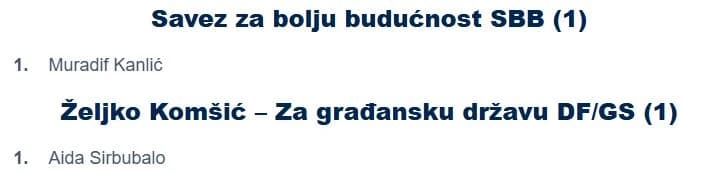 Kazala je da su većinu do petka i u petak imali NiP i lokalne stranke, a da ti nisu bili ni DF ni NES ni bilo ko ko ima ogranke na području cijele BiH.