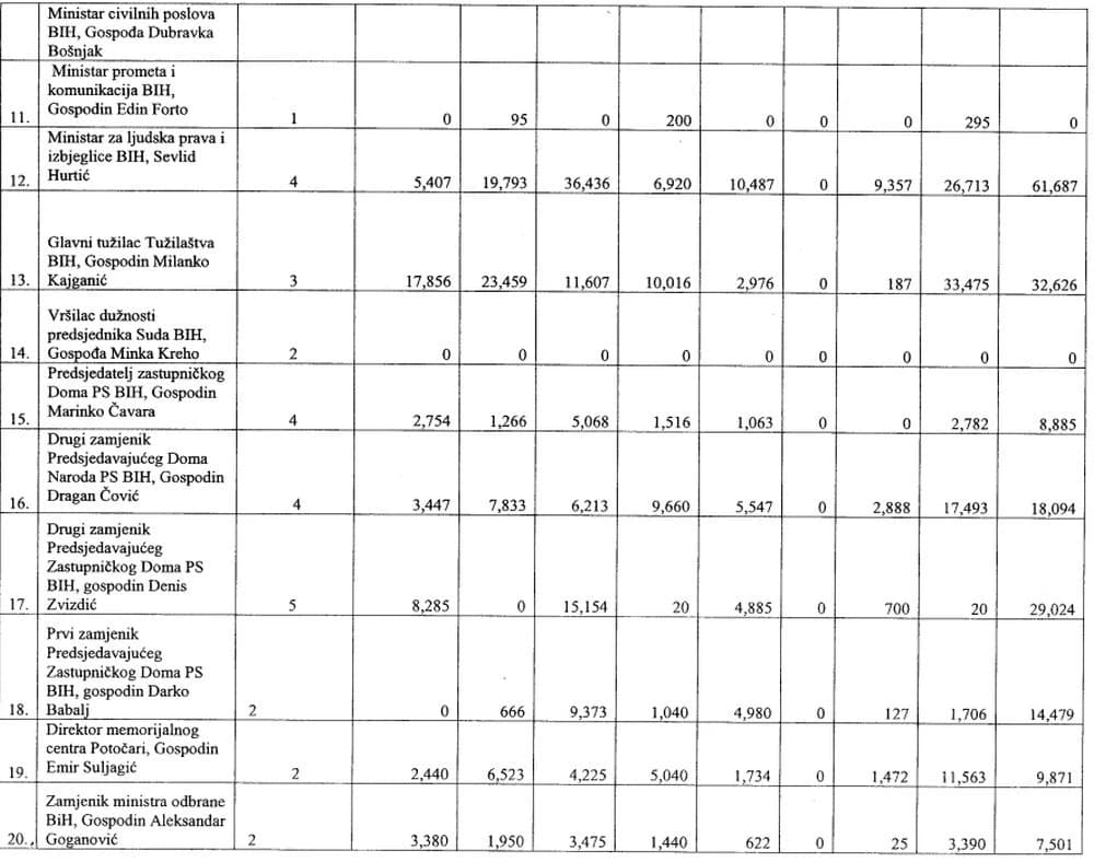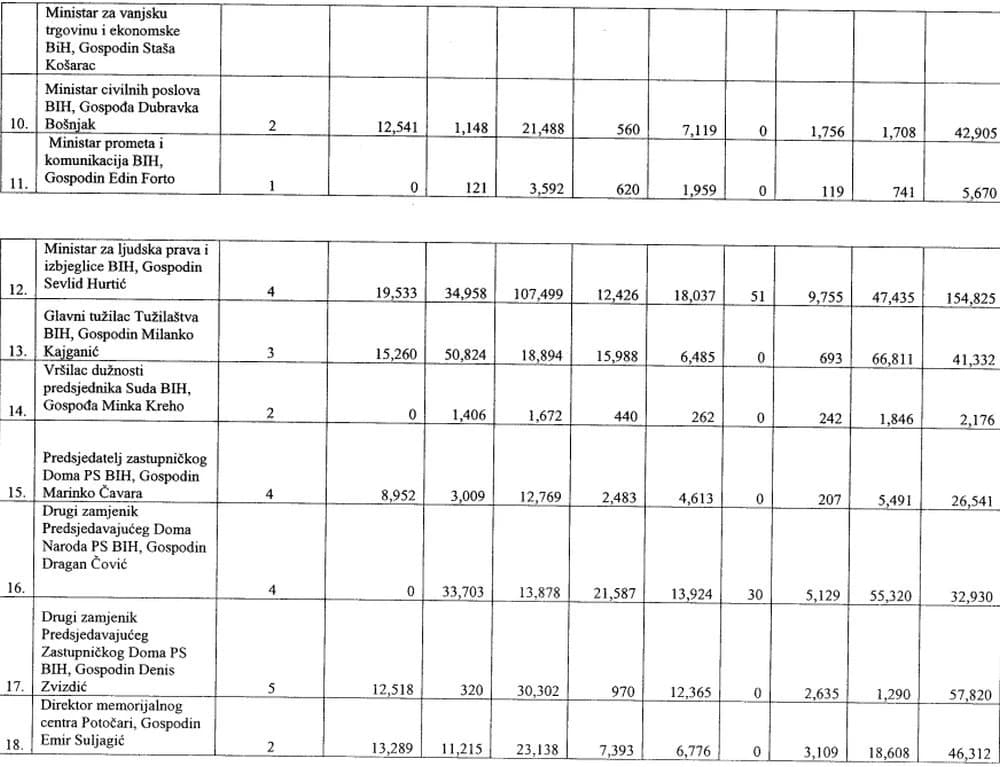 U ovo se ubrajaju avionske karte, smještaj i dnevnice u BiH i inostranstvu.