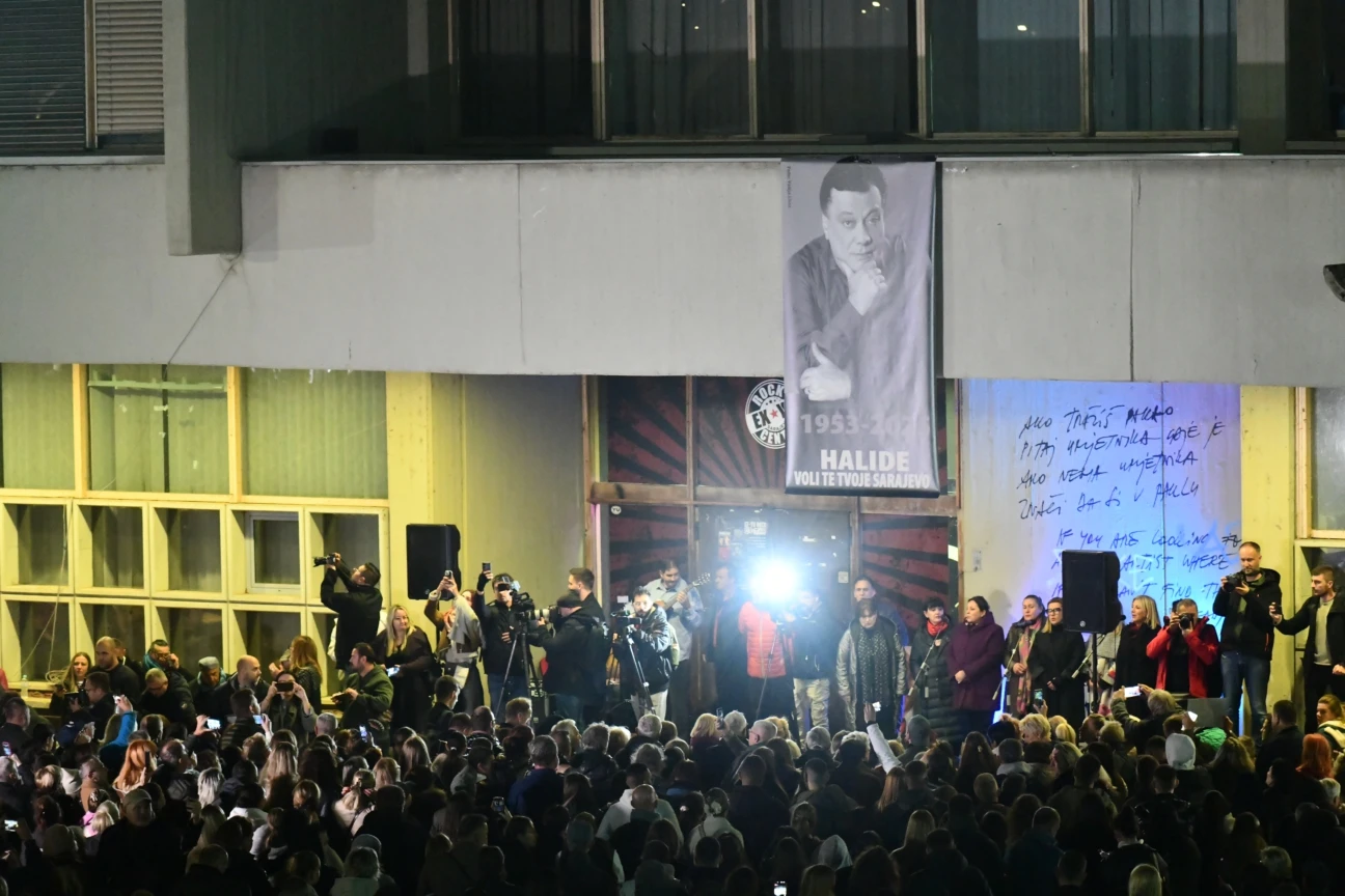 Nakon vijesti o smrti Halida Bešlića, brojni građani Sarajeva i drugih gradova spontano su počeli da se okupljaju večeras ispred Doma mladih kako bi se oprostili od muzičke legende.