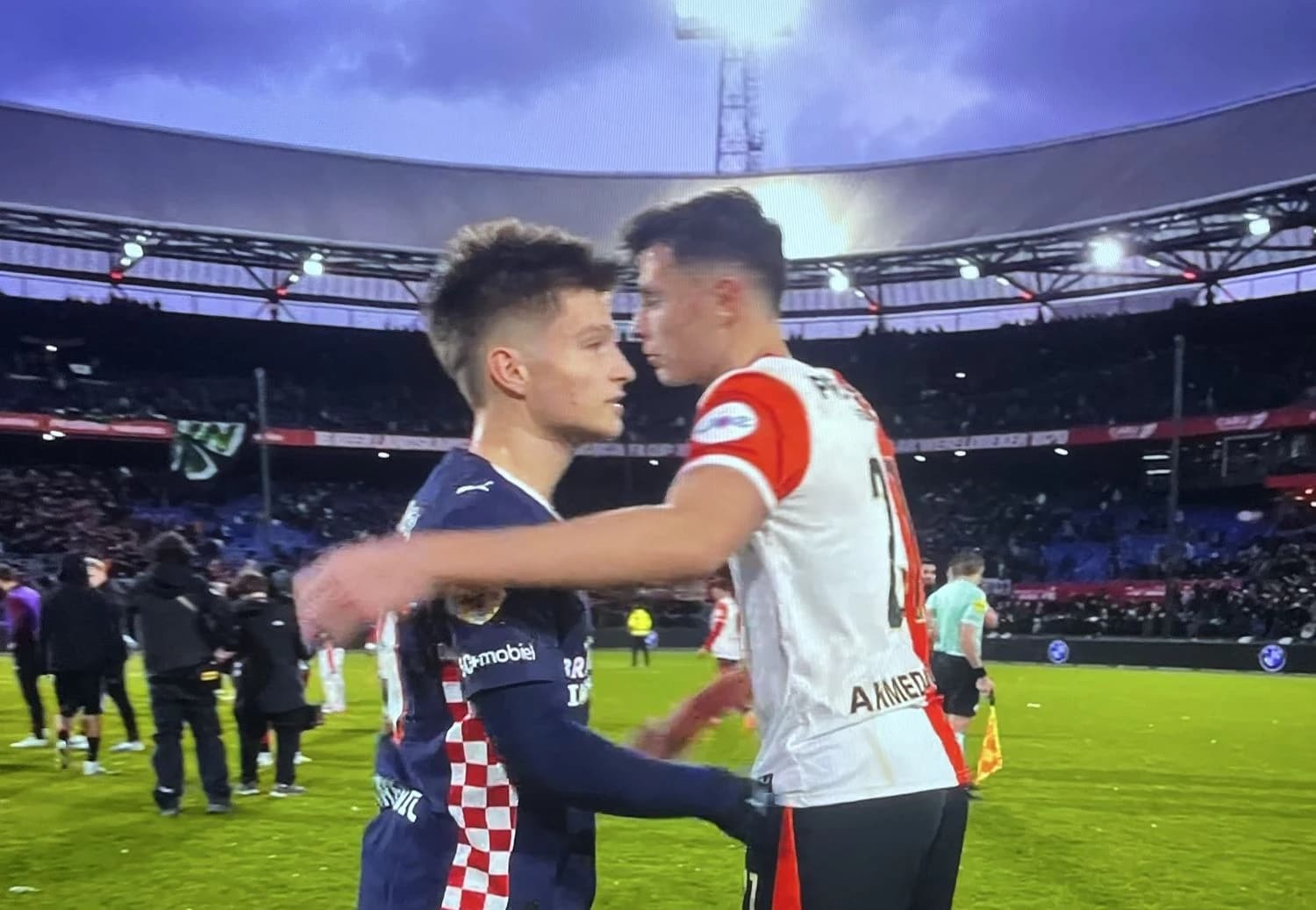 Bivši bh. reprezentativac i igrač Feyenoorda Anel Ahmedhodžić se nakon utakmice pojavio na konferenciji za novinare, gdje mu je novinar De Telegraafa Valentijn Driessen postavio pitanje hoće li imati noćne more zbog Saibarija.