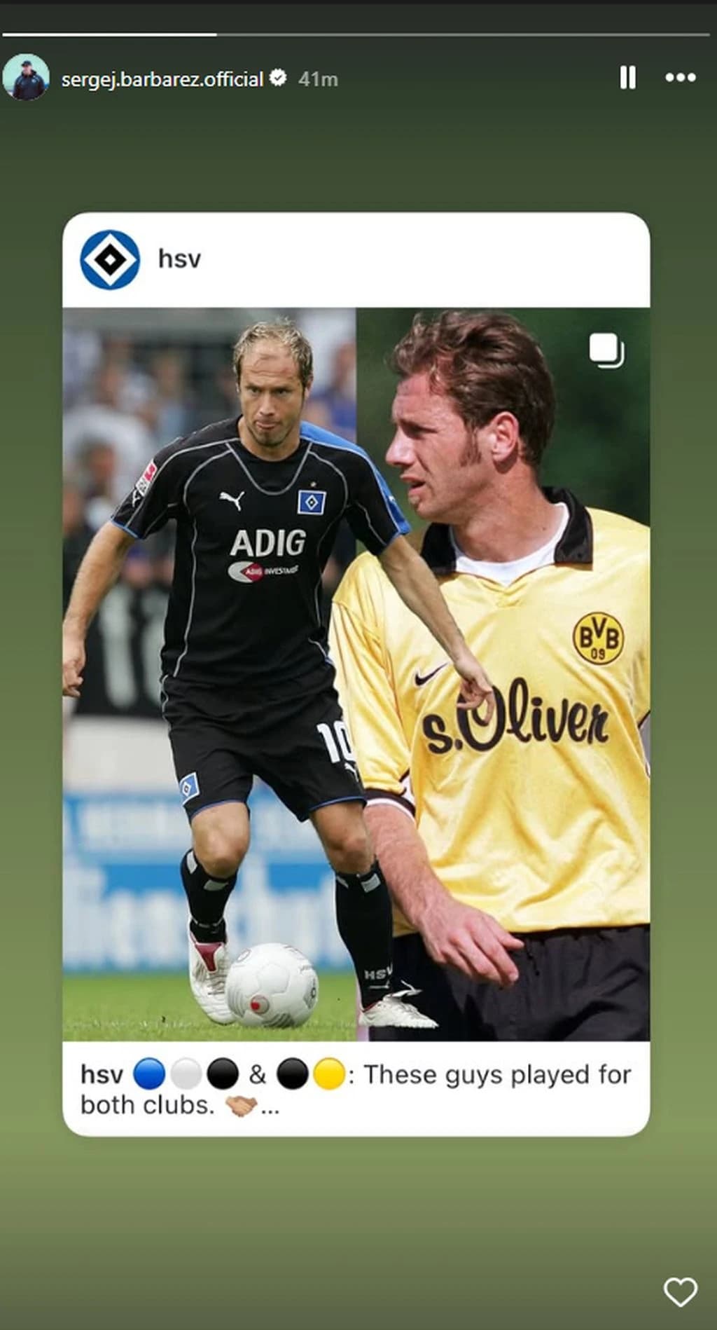 I dalje je aktivan na društvenim mrežama, pa je tako podijelio objavu svog bivšeg kluba HSV-a. HSV u ovom kolu Bundeslige igra protiv Borussije Dortmund te klub iz Hamburga objavio fudbalere koji su igrali za oba kluba.