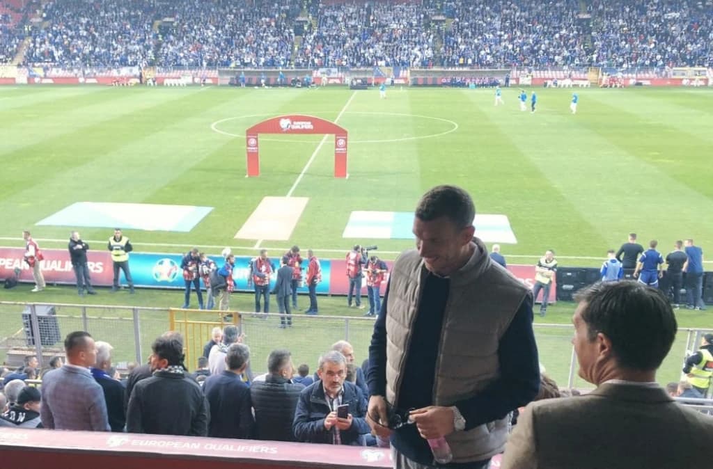 Edin Džeko, kapiten fudbalske A reprezentacije Bosne i Hercegovine, zbog povrede nije mogao nastupiti protiv Finske, ali je iz svečane lože Bilinog polja bodri saigrače.