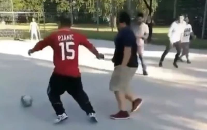 U jednom dvorištu amateri su igrali mali fudbal, a jedan igrač sa zapuštenim stomakom napravio je čuda s loptom.