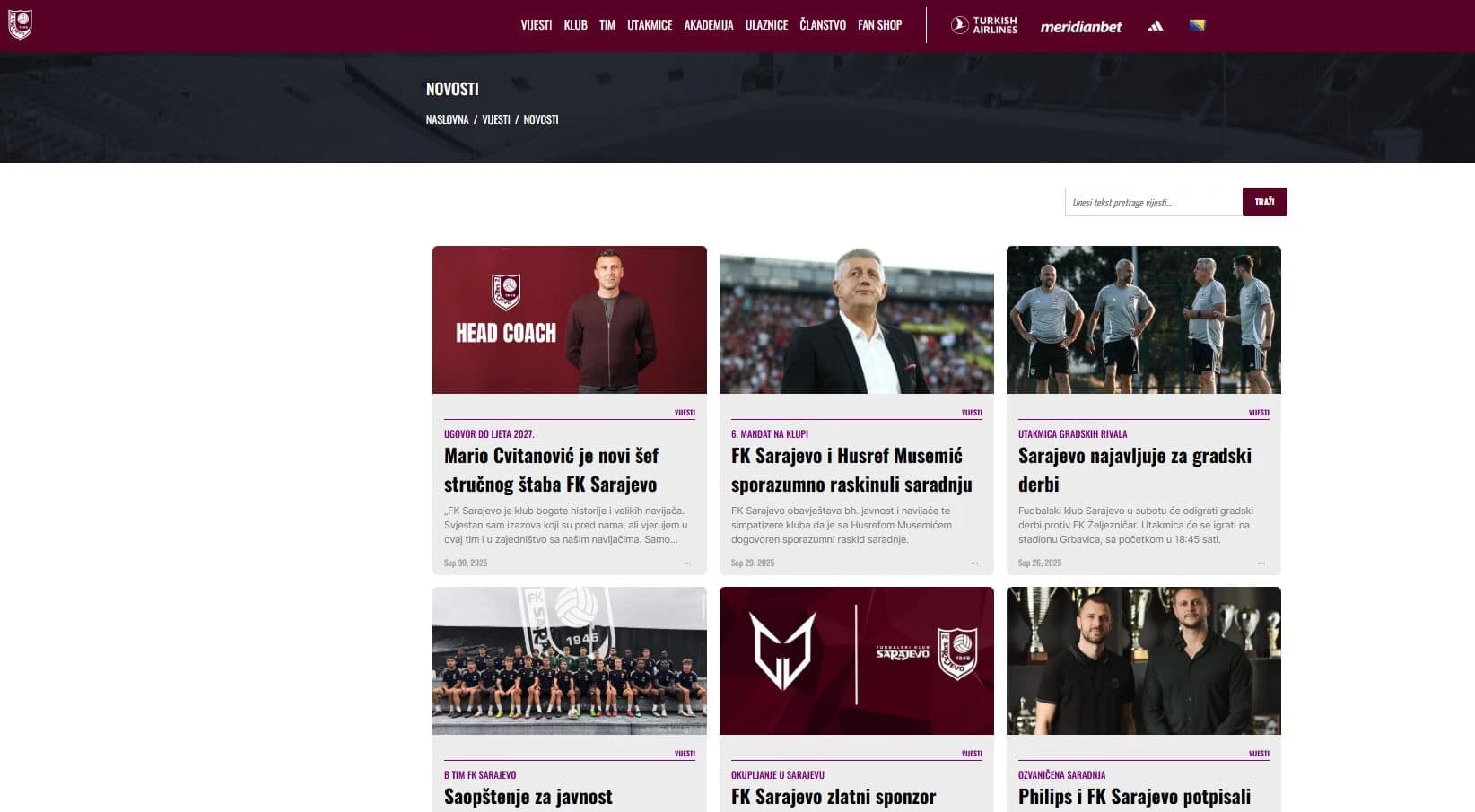 FK Sarajevo na zvaničnoj klupskoj stranici ne mogu pronaći rezultat sa gradskog derbija protiv Željezničara odigranog 27. septembra na Grbavici (2:0, op. a.). Tada je još trener bio Husref Musemić, na web stranici FK Sarajevo stoji najava derbija, ali izvještaja nema. A ni rezultata...