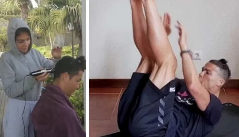 Prvo je njegova djevojka Georgina Rodriguez pokazala kako šiša svog dragog, a nedugo potom Ronaldo je demonstrirao kako održava formu u privatnoj teretani.