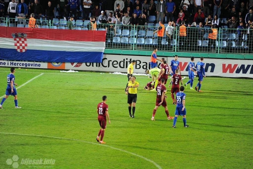 - Tokom čitavog susreta igrači i stručni štab FK Sarajevo bili su izloženi verbalnom nasilju od strane domaćih navijača i službenih lica susreta. Iznimno loša organizacija utakmice rezultirala je činjenicom da je bezbjednost gostujućeg tima bila ugrožena tokom čitavog susreta zbog čestih ubacivanja pirotehničkih sredstava i drugih tvrdih predmeta u teren. Nakon što su u nekoliko navrata bezuspješno pokušali pogoditi igrače FK Sarajevo različitim tvrdim predmetima, publika smještena na tribini sjever pogodila je igrača FK Sarajevo Anela Hebibovića tvrdim predmetom u glavu. Incident je rezultirao prekidom susreta više od 15 minuta - istakli su iz FK Sarajevo, dodavši "jučerašnji susret je nastavljen naredbom službenih lica susreta".