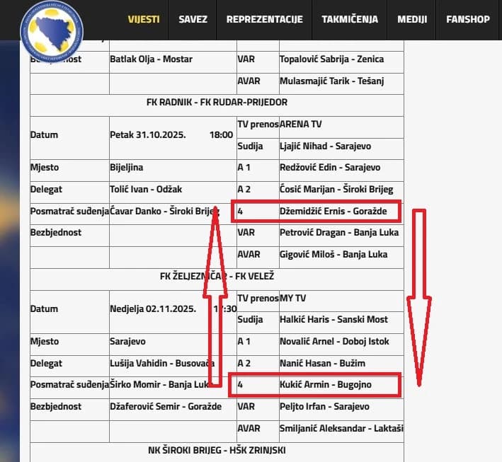 No, promjena sudije na Grbavici se dogodila. I to četvrtog. Prvobitno je određeno da to bude Armin Kukić iz Bugojna, što je objavljeno na zvaničnoj stranici FSBiH.