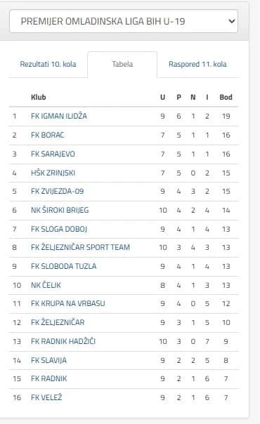Vjeruju da bi pružali mnogo bolje partije, ali čini se da realnosti ipak nedostaje. Juniori FK Velež takmiče se u Omladinskoj Premijer ligi i zauzimaju posljednje mjesto sa sedam bodova u devet utakmica.