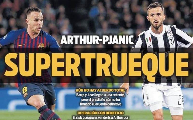 Na današnjoj naslovnoj stranici Diario Sporta pod naslovnom "Supertrampa" navodi se da će brazilski veznjak Arthur preći u redove italijanskog prvaka za 70 miliona eura, dok će Pjanić u Barcelonu za 60 miliona.