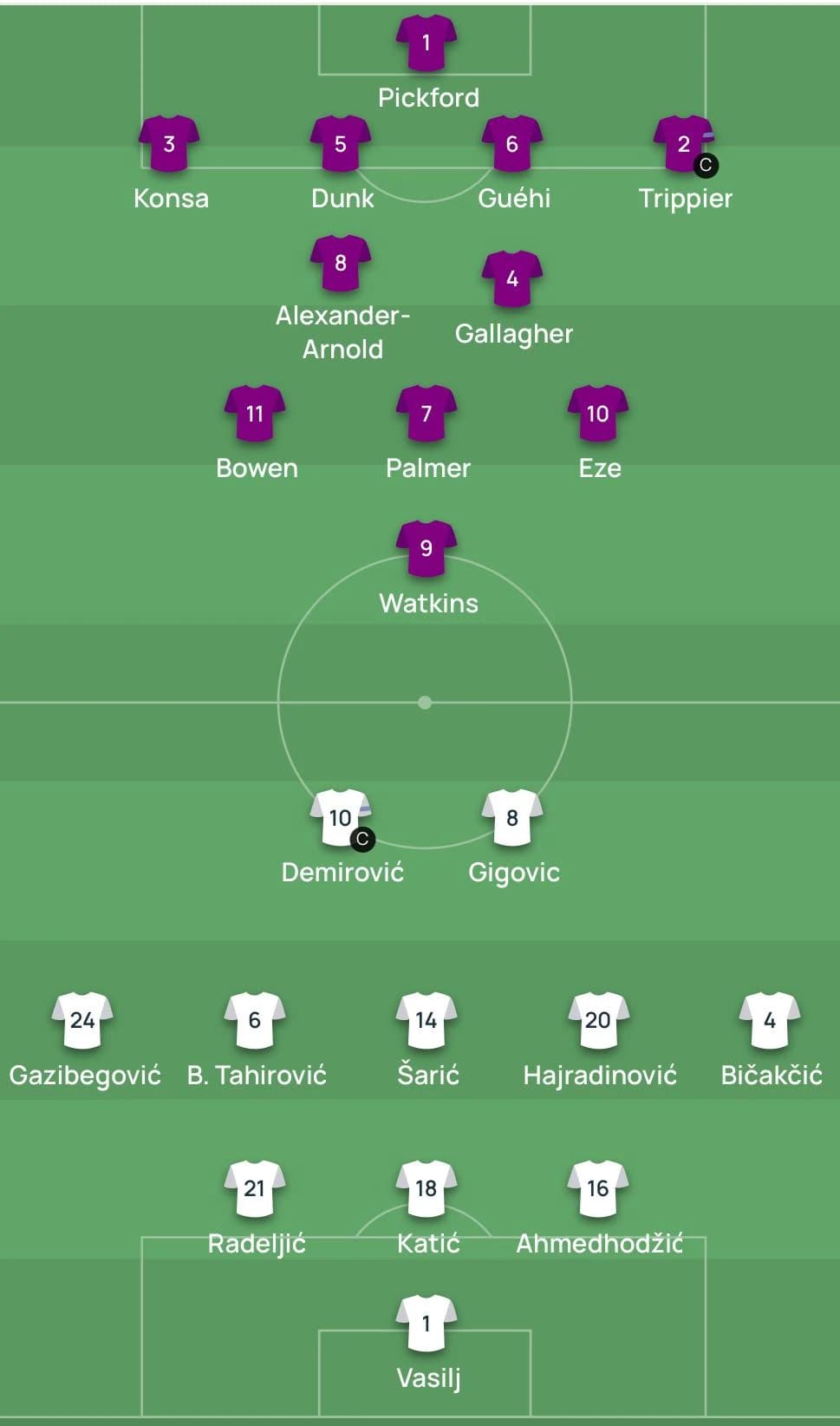 7. minut: Hajradinović je ubacio iz slobodnjaka, Demirović u šesnaestercu uspio zahvatiti loptu, ali ona je završila u rukama domaćeg golmana.