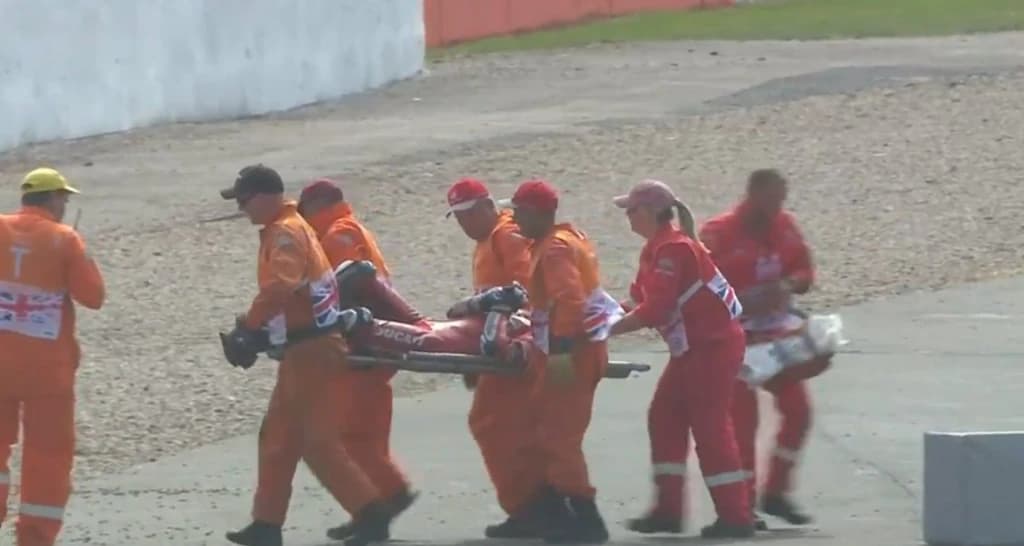 Iako je s palcem prema gore, dok su bio na nosilima, pokazivao kako je uredu, ljekarska pomoć mu se morala ukazati, pa je odmah helikopterom prebačen u bolnicu u Coventryju.